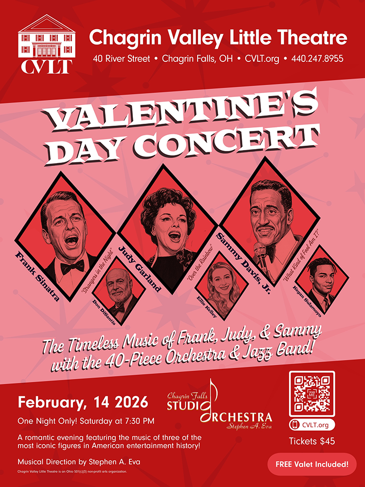 I have the opportunity to work with two fabulous orchestras during the month of February. On Thursday, February 12, I will be singing some Sinatra Classics with the Akron Symphonic Winds Orchestra at the beautiful Celestia Theater in Wadsworth, Ohio for a 7:30 show. Then, we will be doing that show at Brush High School in South Euclid for an afternoon show, 2:00 start time, on Saturday, February 14. Then, in the evening of February 14, I will have the honor of performing with the great Chagrin Falls Studio Orchestra, a 40-piece ensemble of some of the finest musicians in the area, under the direction of Maestro Steve Eva. I’ll be joined by two other vocalists as we pay tribute to the songs of Sinatra, Garland and Sammy Davis, Jr. The show will be at the Chagrin Falls Theater with a 7:30 start time. Details for these shows and how to secure tickets can be found below.